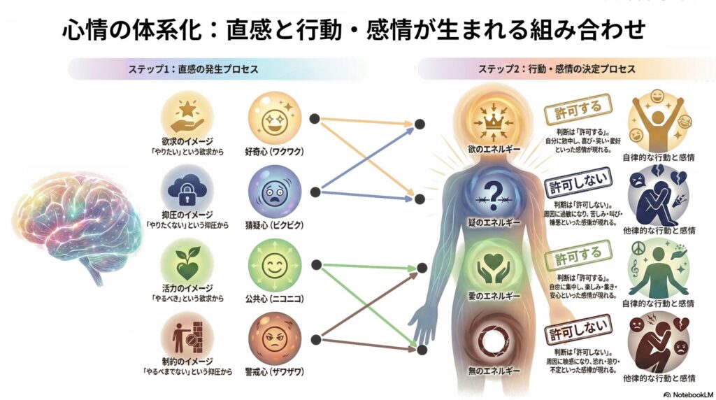 この体系化は、「心情(イメージ状態、エネルギー状態)」の「過程(プロセス)」の定義です