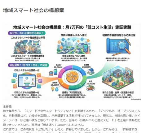 全体像今後の地域社会は、「全国規模の社会変化」「地域規模の生活維持」の対策を行う必要があると考えています。「全国規模の社会変化」とは、「ECサイトによる商品購入」「全国規模のチェーン店」など、どこでも全国レベルのサービス […]