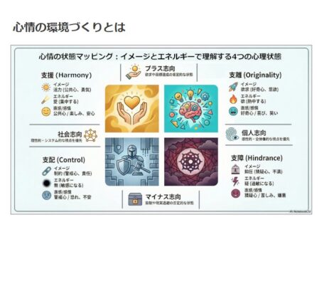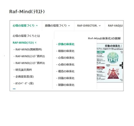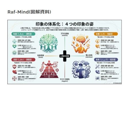 NotebookLMのインフォグラフィックを活用した「Raf-Mind(図解)」です。心情の環境づくりの「印象、相関、心情、心得、構造、回復、制御」を図解しました。